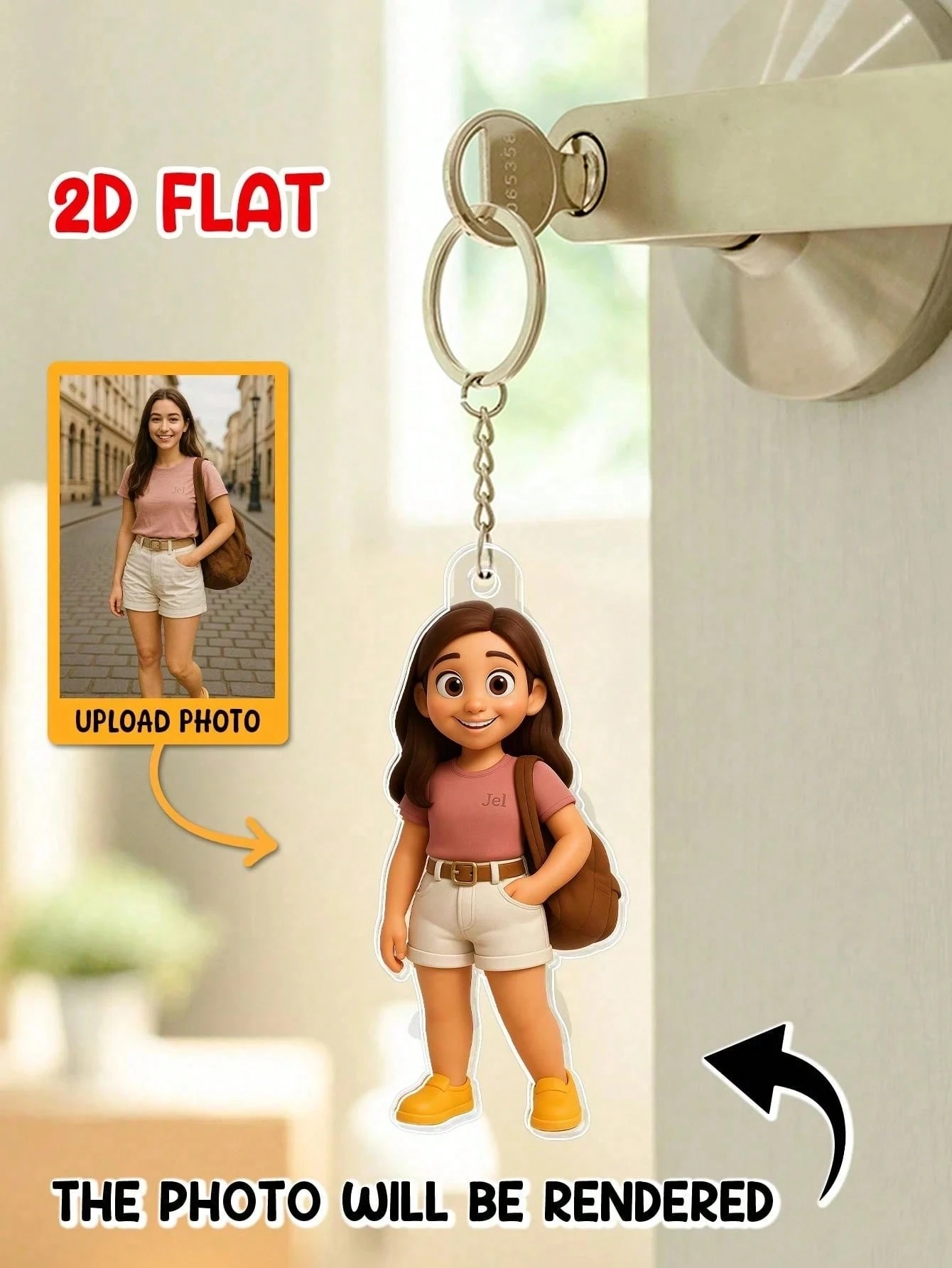 Lojas virtuais também vendem chaveiros feitos a partir de fotos estilizadas: um desenho impresso com uma camada de verniz protetor, super fofo!